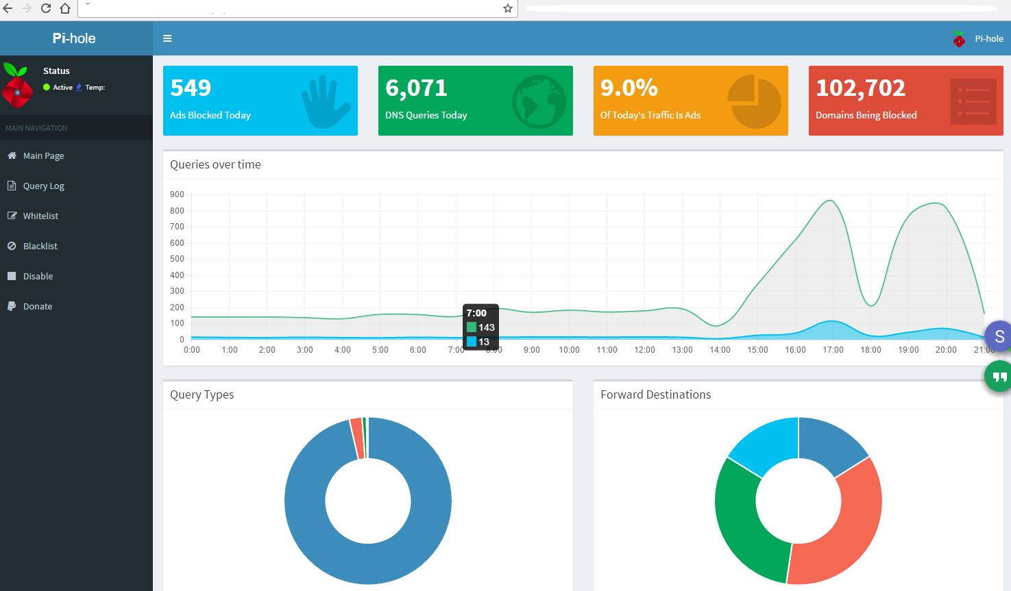 Pi-hole sets up {{lighttpd}} instance (which you don’t have to use) so you can see a pretty admin panel: